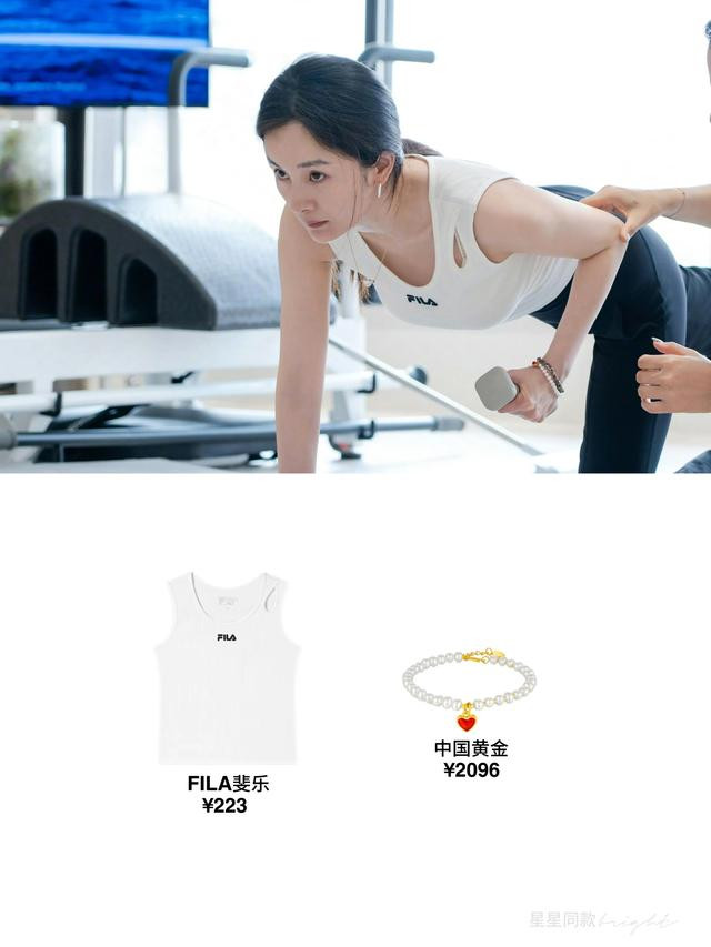 杨幂工作室发了她运动的照片,她手拿哑铃,动作标准,眼神很坚毅。杨幂手腕上戴着一款珍珠和黄金爱心的手链,这款手链很漂亮,被她种草了,杨幂也是喜欢戴黄金的。