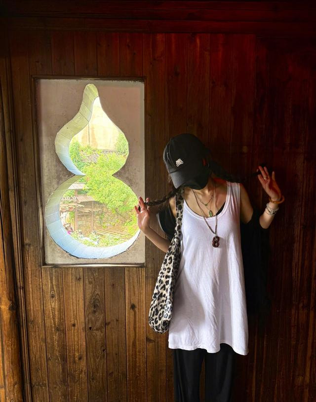 杨幂穿50块背心游江西, 她扎双麻花辫俏皮, 她戴黄金手链运动美!