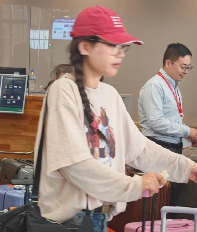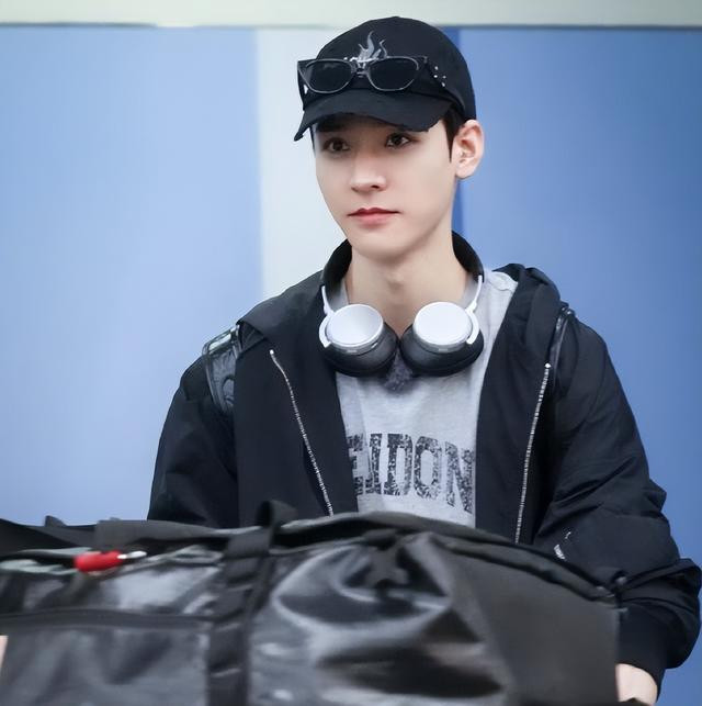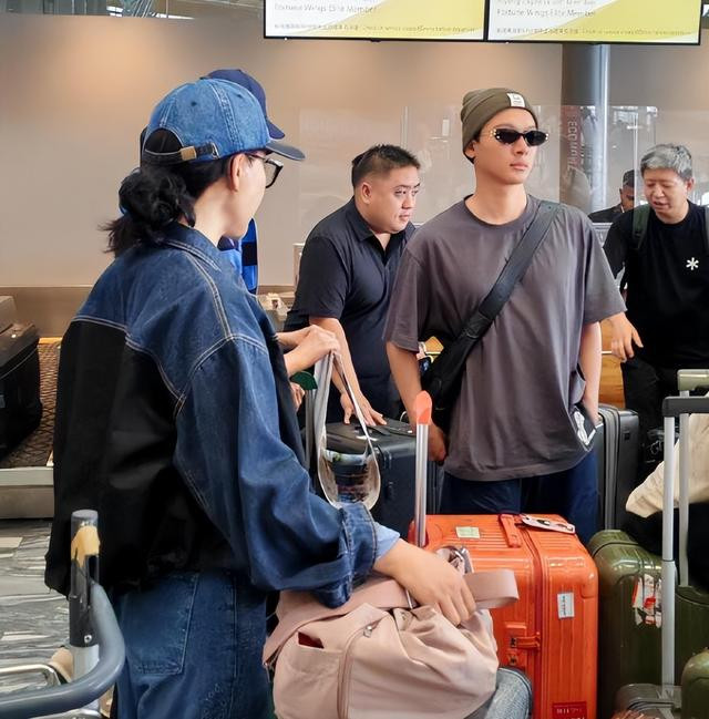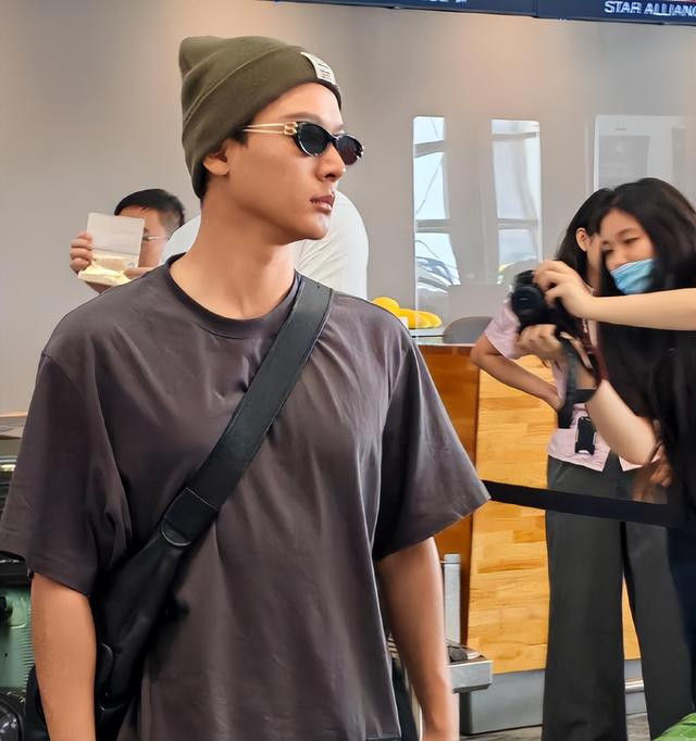 他换上颜色鲜明的冲锋外套直接质感拉满,还以为是秀场走出来的男模。回国路透中穿着简单的串色短袖,但帽子和墨镜却是点睛之笔。
