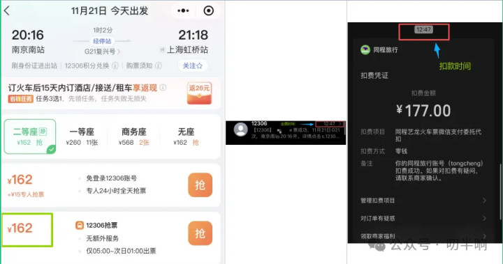 就在我这顿到处求助的操作后,约莫5分钟,手机显示扣款、出票一系列操作完成!