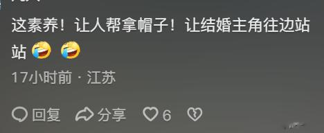 他先是向婚庆司仪点了点头,然后把帽子给了司仪让他帮自己拿着,这一点引发了网友的讨论,说他没素质让司仪给拿帽子,但我觉得网友有点吹毛求疵了,郭冬临这是表示对主家的尊重,如果戴着帽子上台未免有些太敷衍了,他又不好让新人帮拿着,让司仪帮忙也没什么不妥。