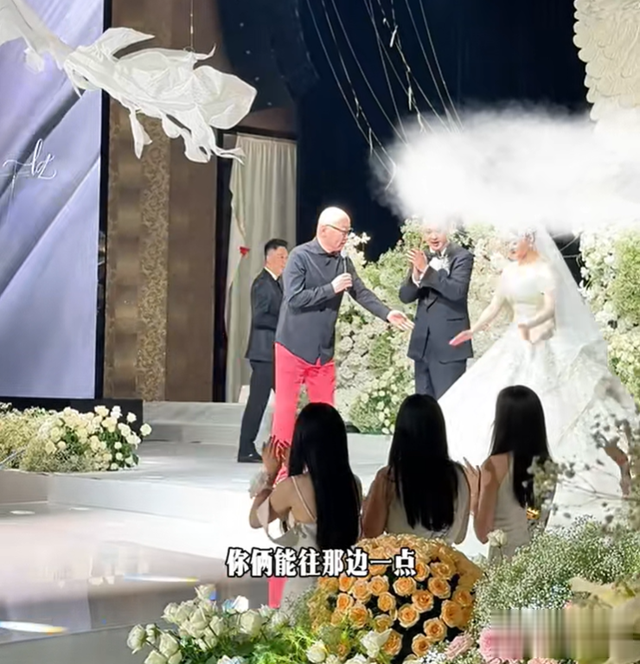 但是现场也有一个小插曲,就是他唱歌时突然要求一对新人往旁边靠靠,导致新娘拖着大婚纱退到了台边上,引发了评论区里很多人的不满。