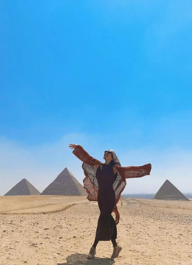 章子怡去埃及旅行了,她在金字塔和狮身人面像前拍照留念,她穿金色长裙打扮的和埃及艳后一样明艳动人。她穿了一套针织套装,那条裤子要三万块。她还戴了一只鸽子蛋大的祖母绿戒指,她的打扮很奢华贵气。