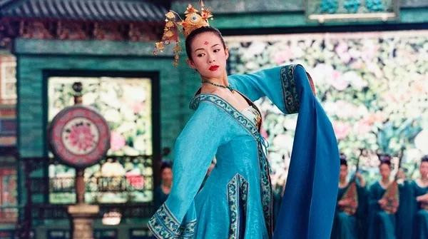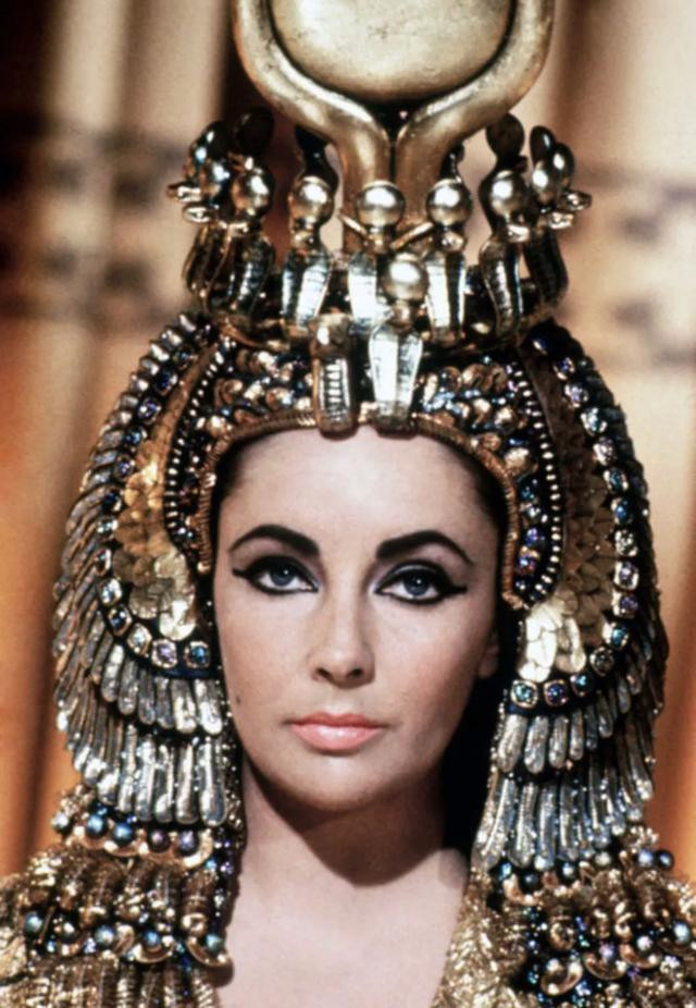 章子怡穿了一条金色竖条纹的连衣裙,她在头上戴着金色头饰,她的打扮很像电影《埃及艳后》里的伊丽莎白·泰勒,很有异域风情。