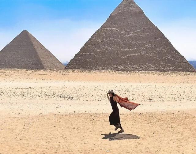 章子怡穿上一件红色针织披肩,她在沙漠上翩翩起舞。她的身体轻盈,仿佛又看到了那个在电影《十面埋伏》里舞姿曼妙的小妹。21年过去了,章子怡的身材保持的很好,她依旧轻盈。埃及的阳光洒在她的身上,这一刻她美的在发光。