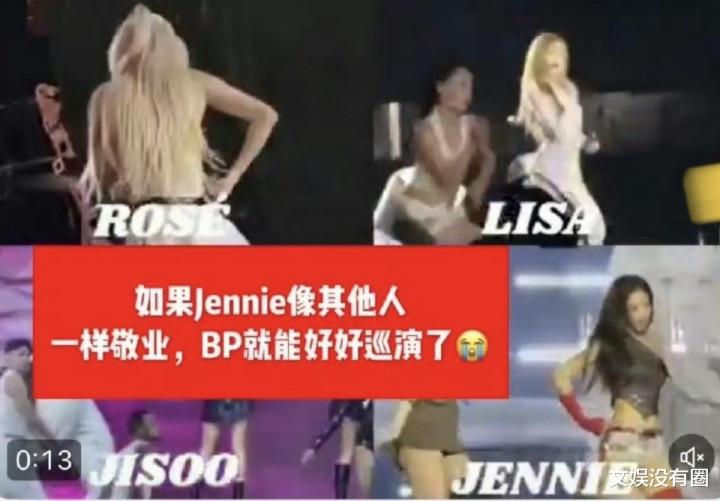 7月举行的多伦多、高阳等场次演唱会上,Jennie被指多次简化舞蹈动作、站桩对嘴型演唱。