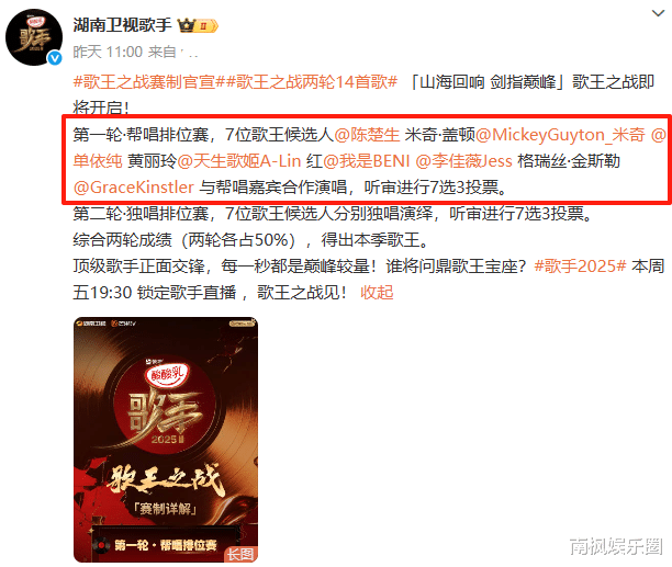 《歌手2025》歌王之战来袭! 从帮唱嘉宾看端倪: 本季歌王一目了然