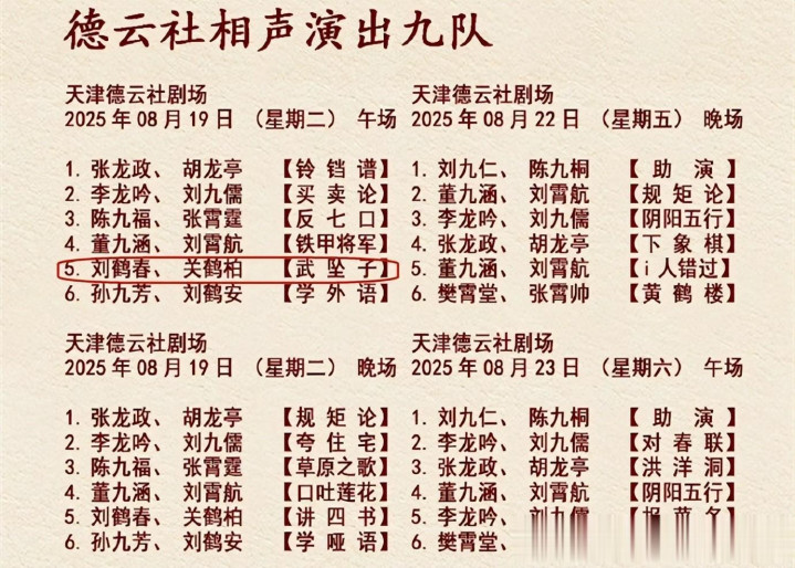 刘鹤春人家有搭档,而且下周李贺春和关鹤柏在九队仍旧有演出安排。既然有搭档,要是为了给刘鹤春机会,干嘛不安排关鹤柏登台。既然让刘鹤春带着郭霄汉,那机会就是给郭霄汉创造的。给郭霄汉机会,不让尚九熙带着。就说明,尚九熙目前正在被处罚,没有资格出来商演。也就是佐证了,德云社下放尚九熙到联合队是处罚的说法。