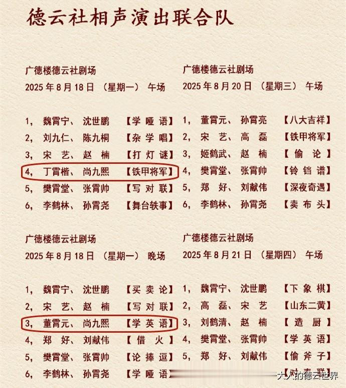 即便这样安排,也有网友认为,这是巧合,应该不是处罚尚九熙。确实,联合队是给不能出差的演员准备的。尚九熙可能不想出差,但想登台,就去联合队玩玩。不过,联合队下周在广德楼,七队下周在三庆园,郭霄汉也在,这么近,干嘛不回归呢?所以,这就是对尚九熙的处罚和试探。意思很简单,听话不?演出给你安排了,听话,就去。不听话,出门右拐。
