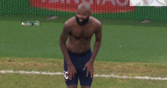 90+2分钟,兰克尔-泽单刀球破门,VAR介入,示意他越位在先。不但进球被吹无效,他还因为脱衣庆祝吃到黄牌,真是亏大发。
