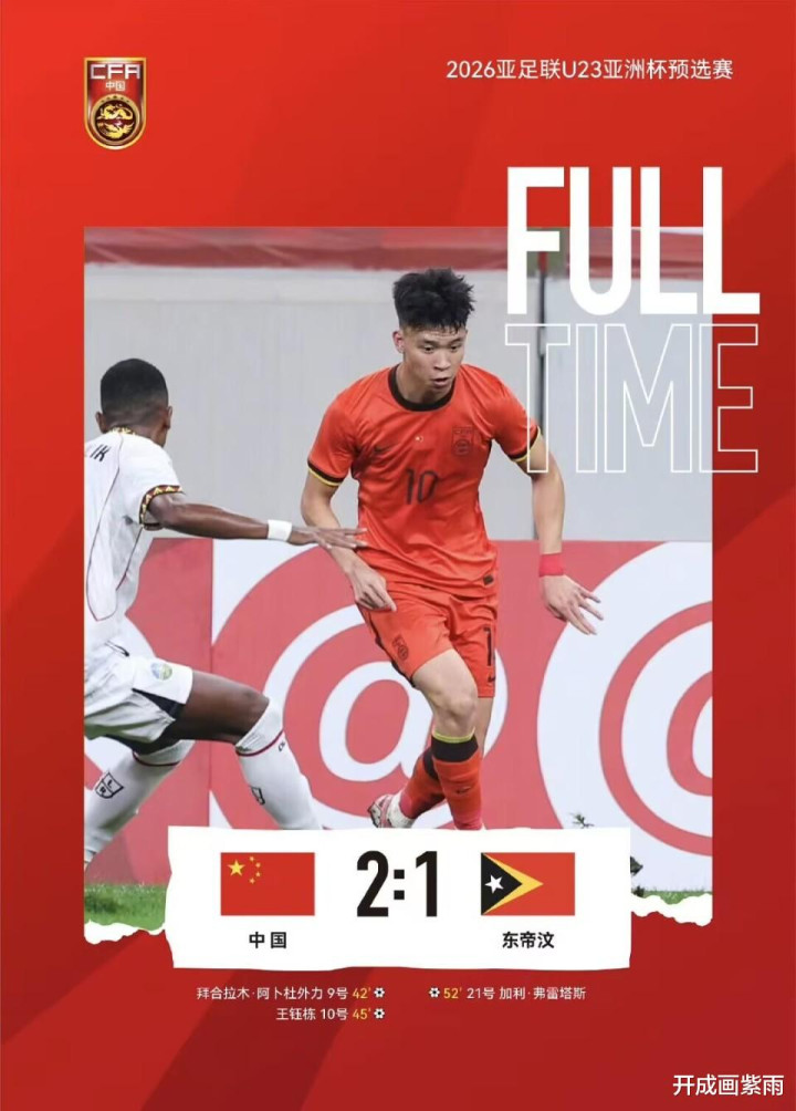 9月3日,中国男足2-1险胜东帝汶,这是U23男足预选赛第一场比赛!
