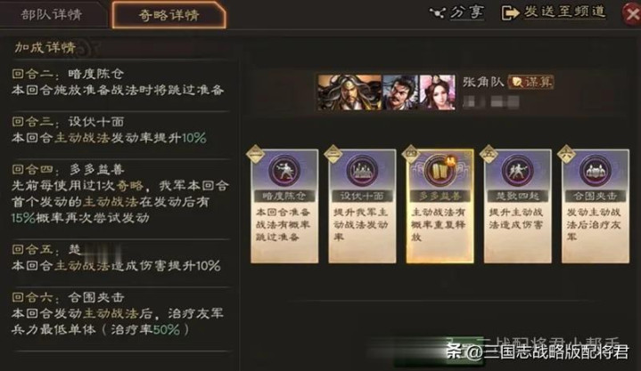 最后总结:目前众多平民队伍里,就以貂蝉+张角组成的“闭月盾”强度最稳健,算得上是最强平民阵容之一!虽说没有很多高爆发满红队伍一般的疯狂获胜连穿,可是基本上主流强队都能碰一碰,哪怕是遇到三幻神和SP曹操汉弓也都打得有来有回!最关键的是武将红度都相对容易提升,战法获取门槛也不算高,玩起来不要太舒服!