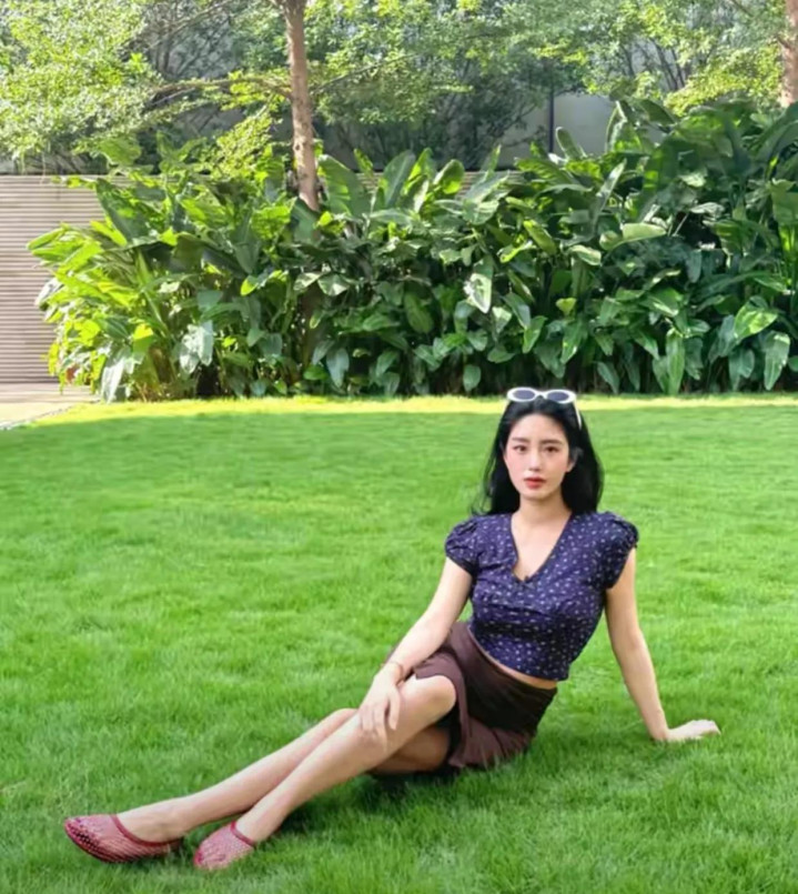 照片里,杨采钰的穿衣风格还是和从前一样,时尚又文艺,上身穿了一件蓝紫色波点短袖,短袖是紧身的,将她的身材曲线都展示出来了,还露出了一截腰部的皮肤,算是半露脐装了。