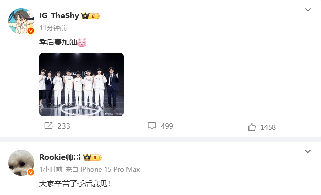 IG众人赛后发文: 站好常规赛最后一班岗, 季后赛加油